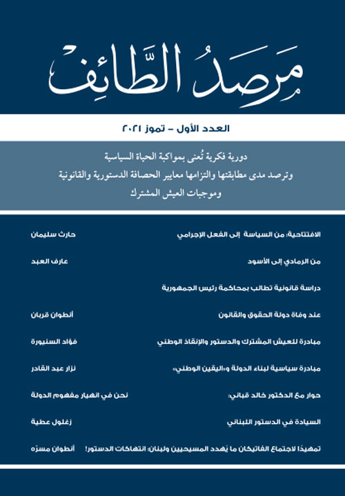 دورية مرصد الطائف العدد الأول 2021-07-07 العدد الأول Marsad Al-Taef - Issue 1 - V.4_0.pdf (3.02 MB) اليقين الوطني الرمادي والأسود محاكمة الرئيس Add new comment Your name Subject Comment About text formats Text format Full HTMLRestricted HTML Restricted HTML You can align images (data-align="center"), but also videos, blockquotes, and so on. You can caption images (data-caption="Text"), but also videos, blockquotes, and so on.