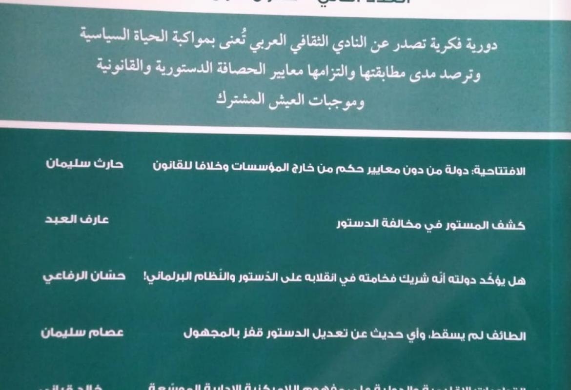 دورية فكرية تعنى بمواكبة الحياة السياسية وترصد مدى مطابقتها والتزامها معايير الحصافة الدستورية والقانونية وموجبات العيش المشترك